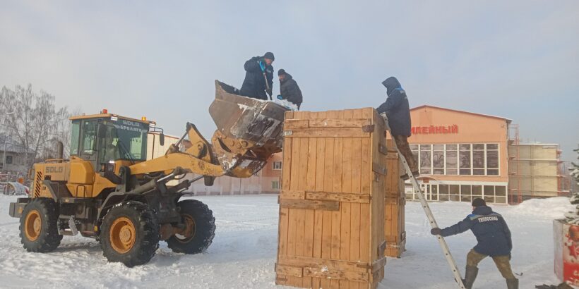 Во всех районах города ведутся работы по устройству снежных городков. В настоящее время выполнены работы по установке новогодних елей с праздничной иллюминацией, частично установлены световые объемные конструкции и опалубочные щиты для устройства снежных фигур Деда Мороза со Снегурочкой, завозят снег для формирования снежных горок.