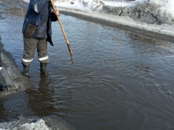 В целях предотвращения подтопления подрядной организацией ООО «ЖилСервис» производятся работы по отводу воды с проезжей части в пос. Притомский, Подобас и Берензас.